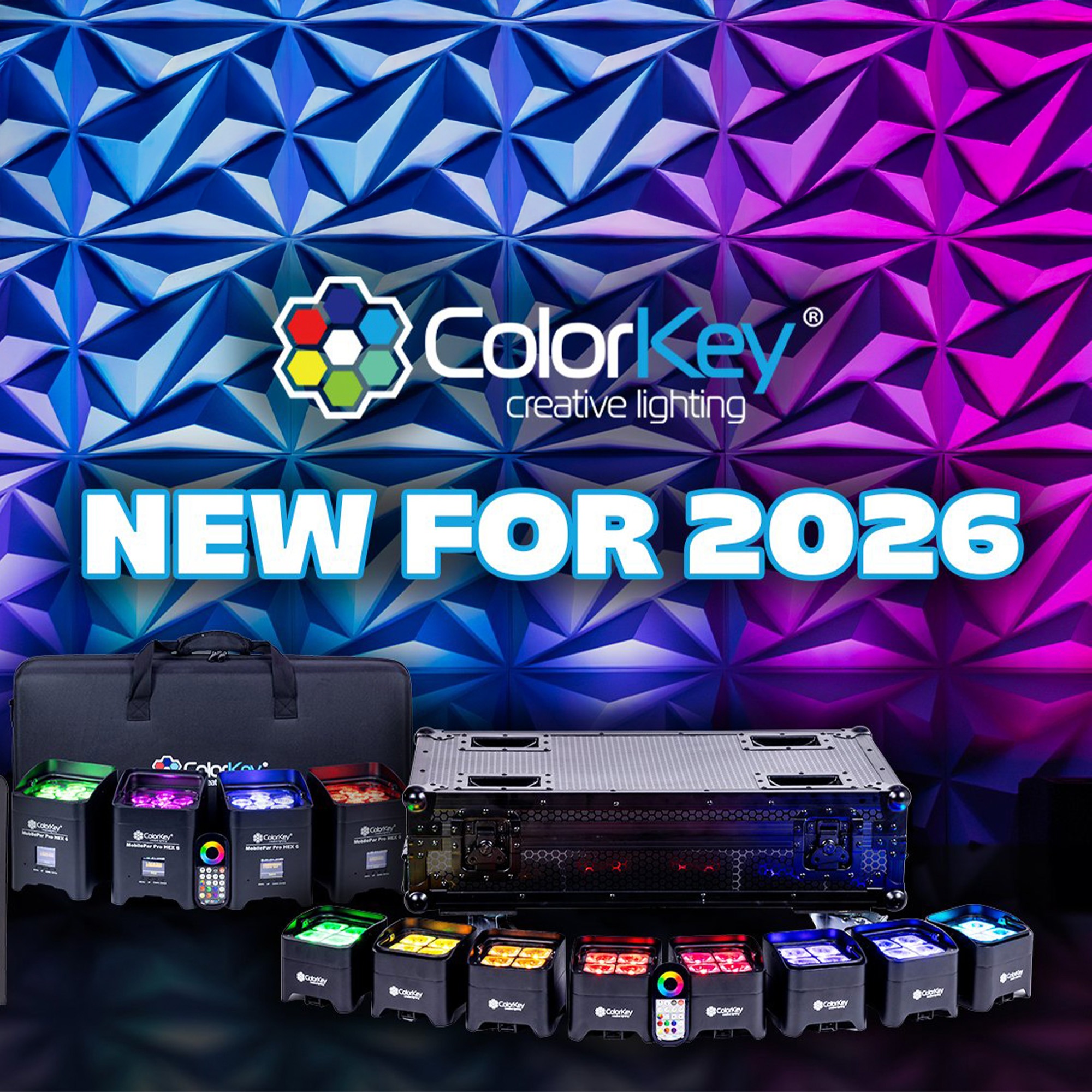 Debuting for 2026, ColorKey introduces five powerful new additions to its wireless lineup. From all-in-one PartyBar systems to professional uplighting solutions and a performance-ready faze machine, these new releases are designed for fast setup, reliable performance, and real-world mobile use.